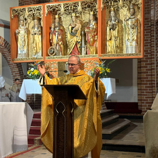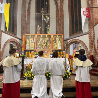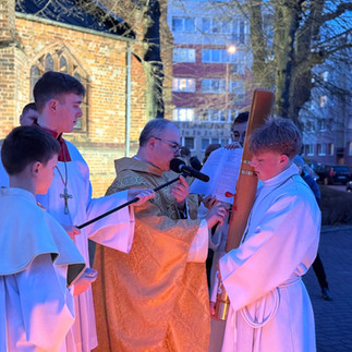 O godz. 20:00 rozpoczęliśmy Wigilię Paschalną od poświęcenia ognia i paschału. Słuchaliśmy z uwagą Exultetu, a następnie słowa Bożego, odnowiliśmy przyrzeczenia chrzcielne i uczestniczyliśmy w Eucharystii. Tej pięknej liturgii przewodniczył i homilię wygłosił ks. Krzysztof Jeruzalski.